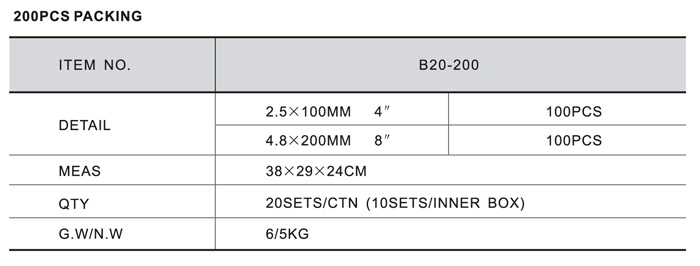 Home Products NYLON CABLE TIES SERIES PACKING OF SERIES B PACKING OF SERIES B b200PCS PACKING