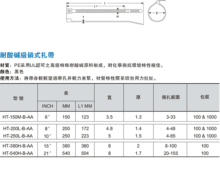耐酸碱级锁式扎带