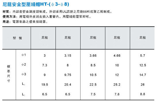 尼龙安全型压线帽HT-(Ф3-Ф8)